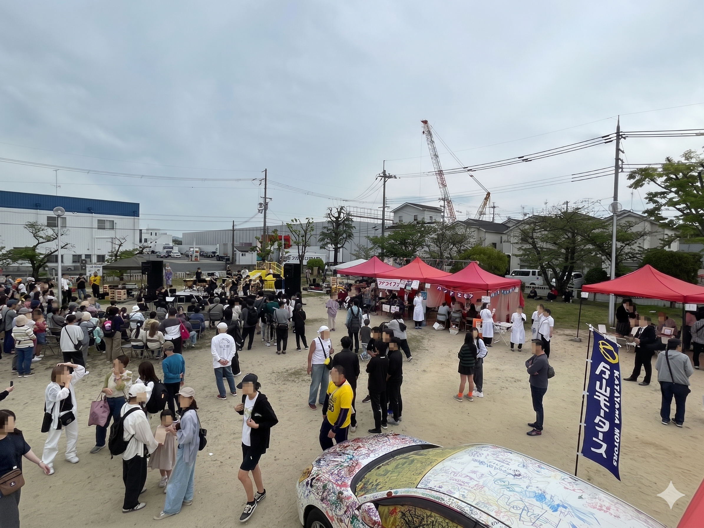 会場は個性的なデザインが目立つ長尾家具町のバス停すぐの車谷公園
